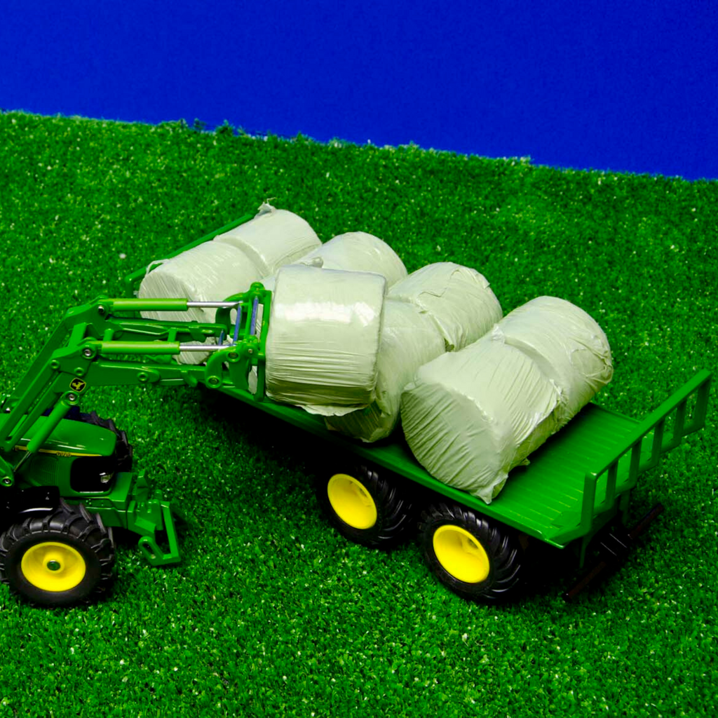 Pack of 4 realistic silage bales, with the appearance of being wrapped in plastic with a greenish hue. Goes perfectly with our Britains Farmyard 1:32 or Siku Farmer 1:32 trailers!