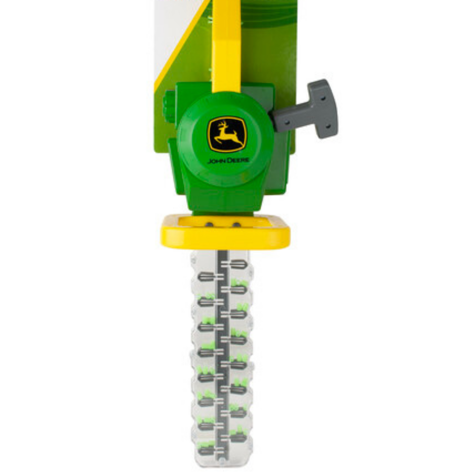 Kids love to lend a hand around the garden, and now they can help even more with the John Deere Power Weed Trimmer! Budding gardeners can help out in the garden with this realistic John Deere hedge trimmer. Simply press the trigger and pull the cord to hear a lifelike trimmer sound. The brightly-coloured, durable plastic construction ensures safe handling.