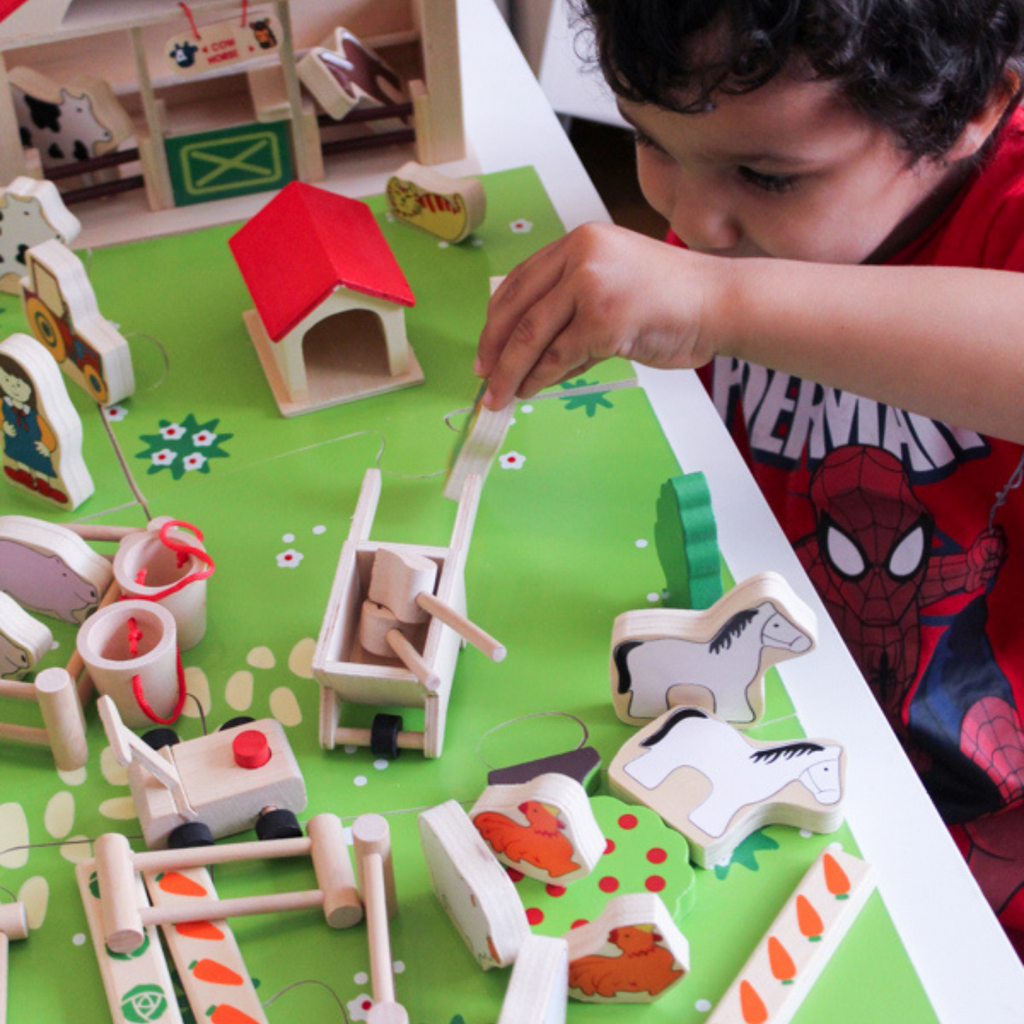 This brightly coloured wooden Play Farm includes a functional stable and windmill, a vegetable patch, kennel and pond as well as lots of animals, tools and movable fencing. This wooden playset will provide hours of fun for your little one as they discover the delights of the farm.