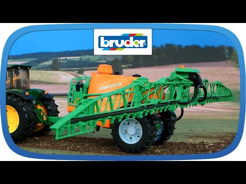 Farmers need crop sprayers to protect their crops from pests and disease. This crop sprayer has a fully functional spreader unit with a fillable water tank whose sophisticated pump and hose system easily spreads the water across the little farmer's fields. Thanks to the outrigger width of approx. 1 metre, it is also possible to work on larger outside play areas in an efficient way. Other realistic details include a fold-down support leg, an unfolding step ladder, and a height-adjustable outrigger. Compatible with all our Profi-Series by Bruder tractors (available separately).