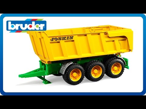 The trailer tips up and can be locked in the up position through the telescopic arm. The tailgate opens and can be fixed in various positions. The corn hatch can also be opened. Plus, you can extend its play value by hooking it up to any of our tractors from the Profi-Serie by Bruder collection (sold separately).